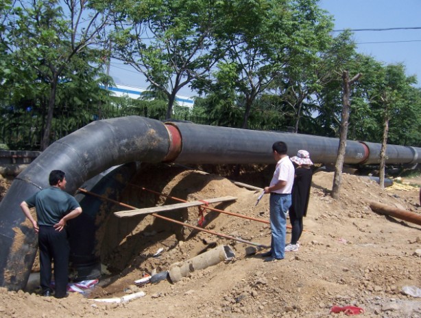 項(xiàng)目概述:2010年泰安市東城區(qū)循環(huán)水節(jié)能改造重點(diǎn)項(xiàng)目,本項(xiàng)目我們采用了預(yù)熱無(wú)補(bǔ)償直埋敷設(shè)施工技術(shù)。在供熱管道敷設(shè)方式中,直埋敷設(shè)因?qū)煌ㄓ绊懶 ⒈阌谑┕ぜ霸靸r(jià)低等優(yōu)點(diǎn)被廣泛采用。其中,無(wú)補(bǔ)償直埋敷設(shè)是一種技術(shù)先進(jìn)且造價(jià)較低的敷設(shè)方式,它與有補(bǔ)償直埋敷設(shè)相比,突出的優(yōu)點(diǎn)在于大大減少了固定支座和補(bǔ)償器小室的數(shù)量,僅在管道變徑、較大管徑與不同敷設(shè)方式(如直埋敷設(shè)與地上敷設(shè))交界處設(shè)置固定支座,特別適用于地下管網(wǎng)復(fù)雜或地下水較高的地區(qū)。 本工程地點(diǎn)在市區(qū)內(nèi),施工難度大、工期緊,我們積極協(xié)調(diào)、加班加點(diǎn),在當(dāng)年10月中旬圓滿完工,并且一次性試運(yùn)行成功,確保了采暖期的正常供熱。本工程主管網(wǎng)及分支管網(wǎng)共敷設(shè)管道70多公里,實(shí)現(xiàn)供熱面積達(dá)100多萬(wàn)平方米。